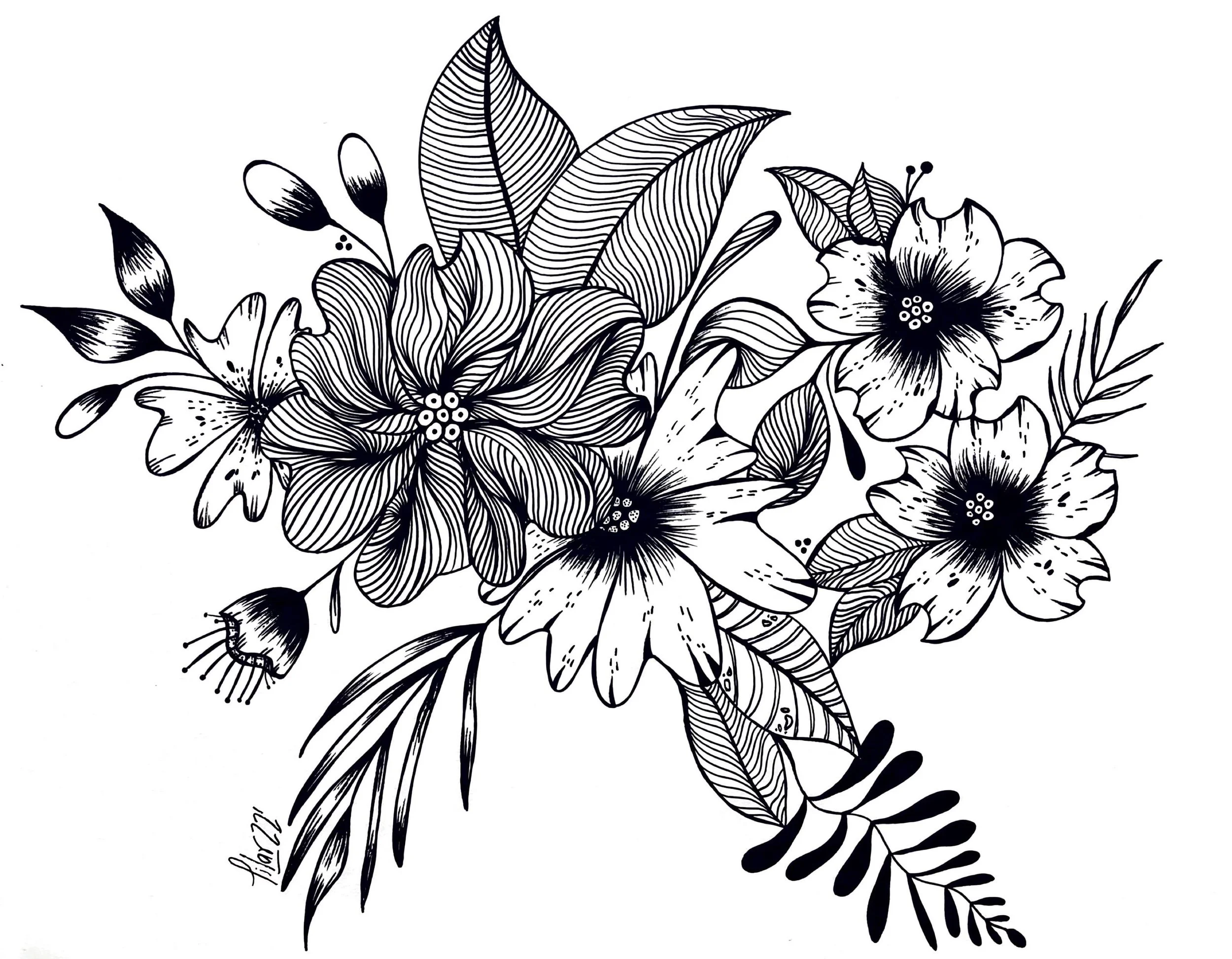 Ink illustrations with botanical accents that represent simplicity in a beautiful decorative way