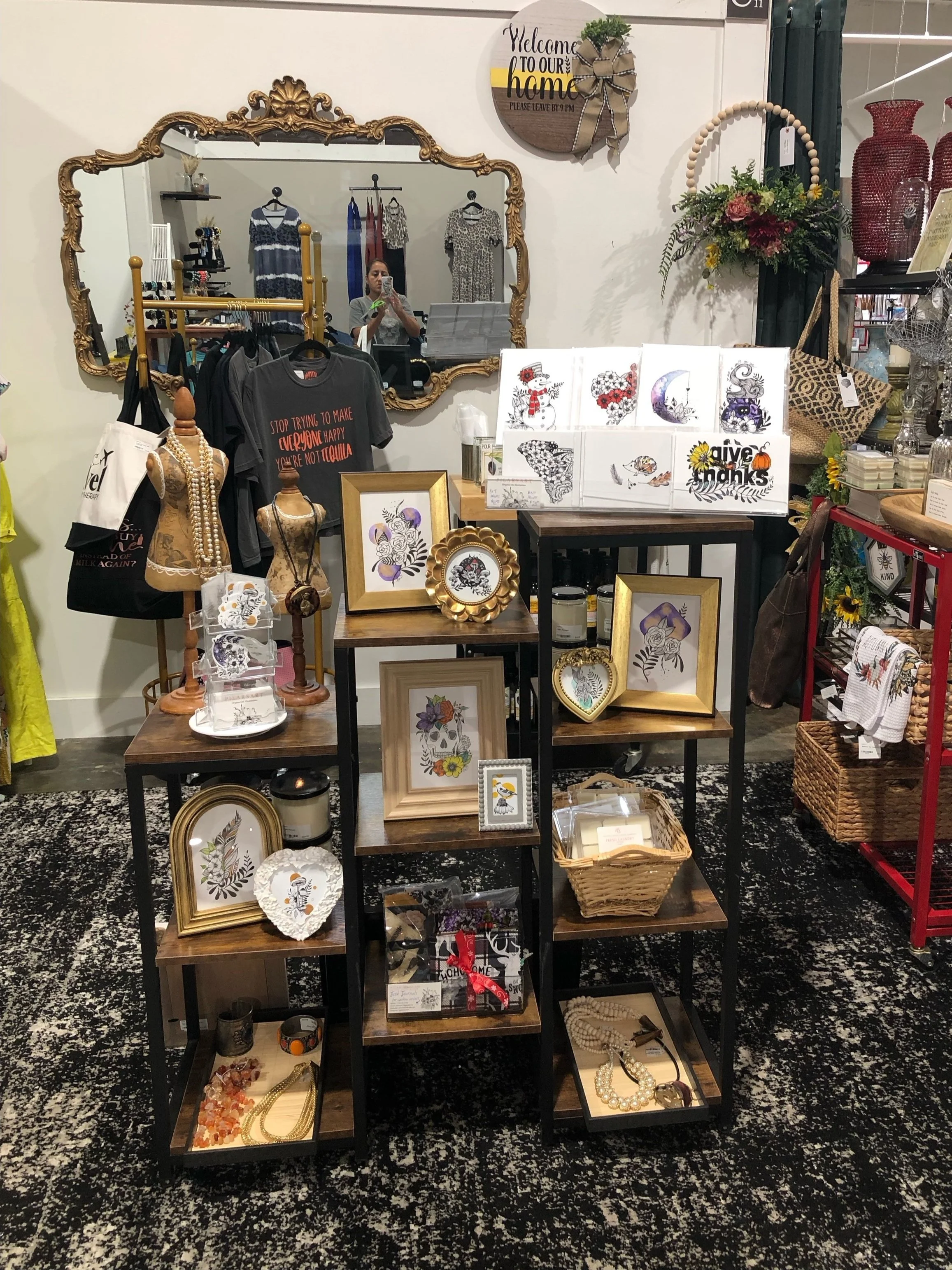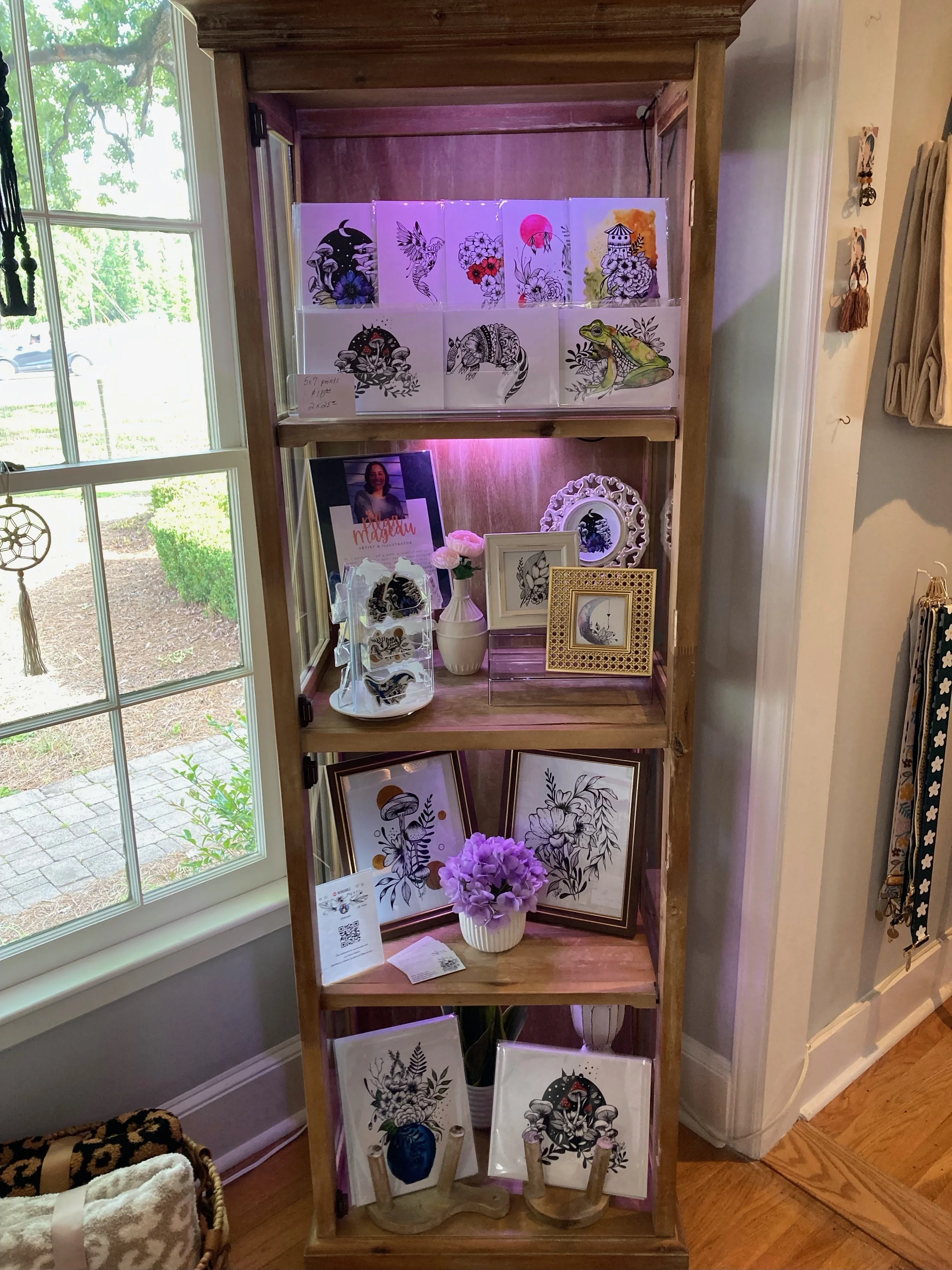 This small business store is located at 5519 Indian Trail Fairview Rd, Indian Trail, NC 28079. You can find my work in a shelf or check out my mural around the store! Also available online at https://kimberlisplace.com/brands/pilarsart/